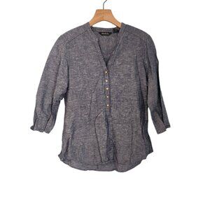 Eddie Bauer Linen/Cotton Blouse Tunic 3/4 Sleeve Women's Small Boho Blue