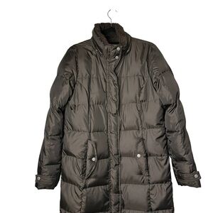 Eddie Bauer Long Down Parka Jacket Womens SZ Small Brown Coat Puffer NO Hood