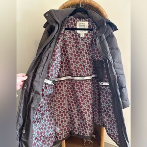 In great used condition from a smoke free/pet free home. Hood zips off jacket if desired and fur trim can be removed from hood as well. 24” pit to pit and 39” long