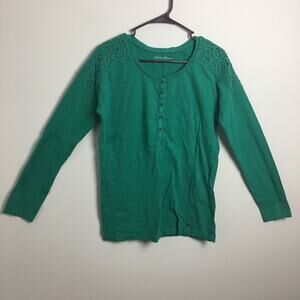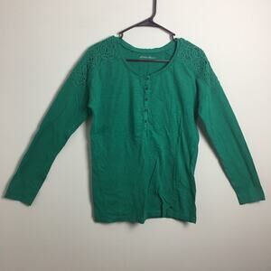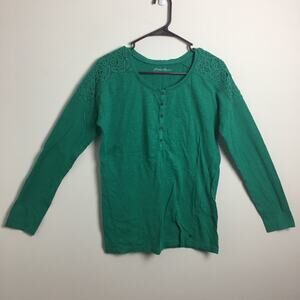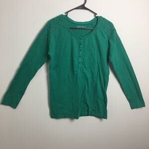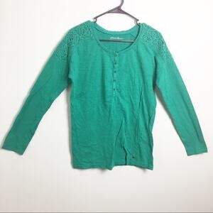 Eddie Bauer Long Sleeve Blouse with Lace Shoulders and Button Top Green Medium