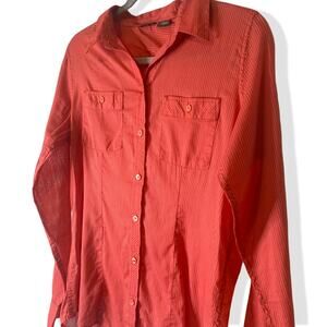 Eddie Bauer Long Sleeve Button Up Women's Collared Shirt Salmon MEDIUM