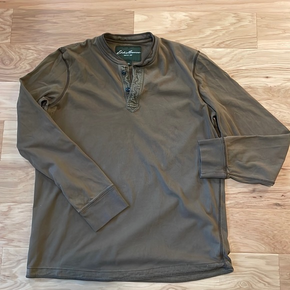 Eddie Bauer Long Sleeve, Henley, Tan, Large Tall