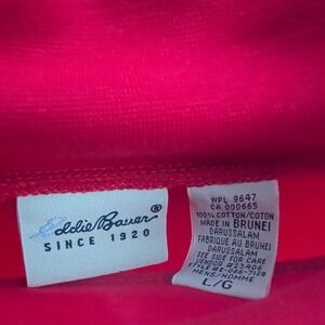 The Eddie Bauer Long Sleeve High Neck Classic Pullover Sweatshirt in fuchsia, size L, is a vibrant and cozy addition to any man's wardrobe. Crafted in a bold fuchsia hue, this sweatshirt features a high neck design and a classic pullover style, offering warmth and casual comfort. The long sleeves and relaxed fit make it ideal for laid-back outings or layering during cooler weather, blending practicality with a pop of color. Eddie Bauer's commitment to quality ensures durability and timeless style, perfect for elevating your everyday casual look.