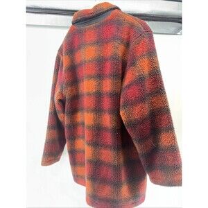 Eddie Bauer Long Sleeve Orange Red Blue Plaid Fleece Shacket Lined Button Up M