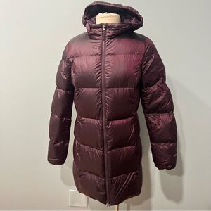 This Eddie Bauer Luna Peak Water Resistant Down Parka in Deep Eggplant is in very good condition.
