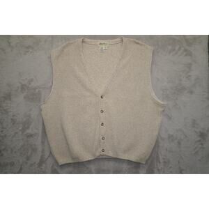 Eddie Bauer Made in USA Knit Button Vest Men’s XL Beige 100% Cotton Vintage