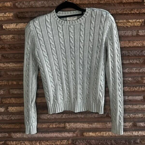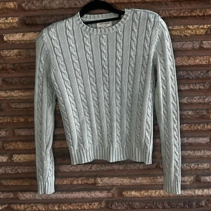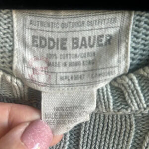 Eddie Bauer Marine Blue Cable Knit 100% Cotton Sweater