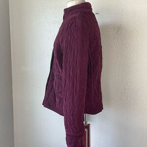 Eddie Bauer Maroon Quilted Corduroy Full Zip Coat Size L EUC