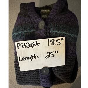 Eddie Bauer Medium Wool Blend Hooded Button Front Sweater Cardigan crop sleeve