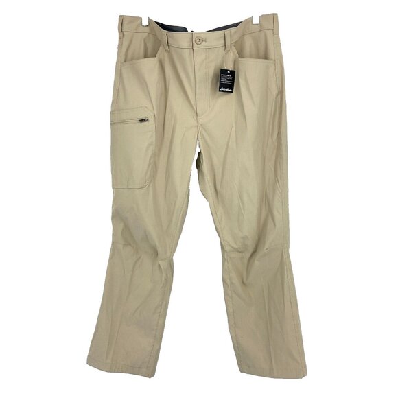 Eddie Bauer Men 38x30 Rainier Pant Nylon Hiking Outdoor Beige Sun Protection NEW