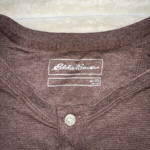 This is a preowned Eddie Bauer Men Brown Long Sleeve Shirt Size 3XL. It is in good preowned condition. Please look at the pictures for the condition of the shirt.