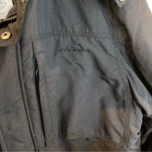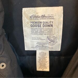 Eddie Bauer Men Goose Down Puffer Winter Coat Full Zip Flap Pockets Black Sz M