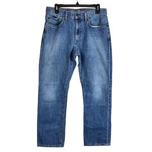 Eddie Bauer Men Jeans Size 33x32 Straight Blue Distressed Hems Classic Denim