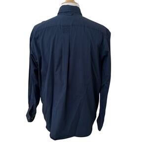 Eddie Bauer Men Navy Blue Wrinkle Resistant Long Sleeve Button Down Shirt Size L. Preowned in great condition. Front top pocket, perfect for travel or everyday wear, this shirt combines comfort and style.