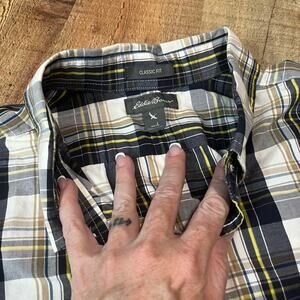 Eddie Bauer Mens 100% Cotton Classic Fit Plaid Longsleeve Button Down Shirt Sz L