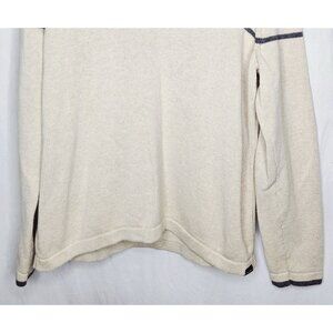 Eddie Bauer Men's 1/4 Zip Mock Neck Sweater Gray Off White Stripe Large