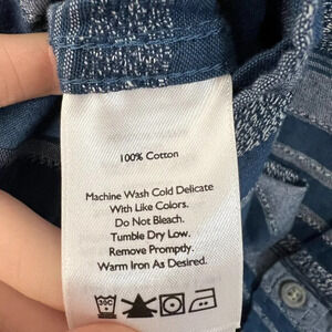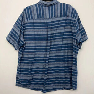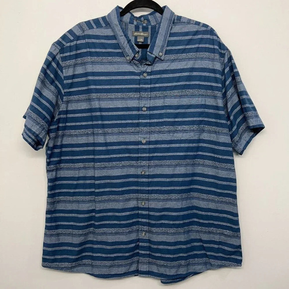 Eddie Bauer Mens 2XL Blue Navy Stripe Button Down Shirt Short Sleeve
