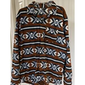Eddie Bauer Men’s Aztec Fleece Button Up TXL Brown Southwestern Aztec Print