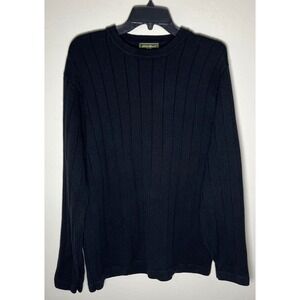 Eddie Bauer Mens Black Cotton Ribbed Knit Long Sleeve Crew Neck Sweater