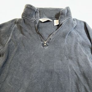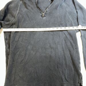This is a preowned Eddie Bauer Mens Black Sweater Shirt Quarter Zip Size Small. It is in fair preowned condition. There is minor fading in the zip area. Please look at the pictures for the condition of the sweater.