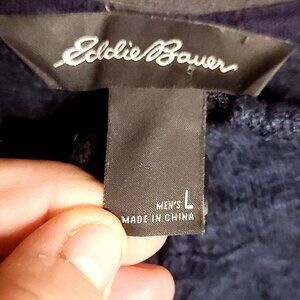 Eddie Bauer men’s blue quarter zip fleece lined pullover large. Gently used condition, there is a little wash wear. Measurements are: 27” sleeve, 28 ½" from shoulder to hem, and 24 ½" from armpit to armpit.