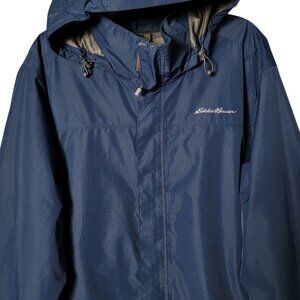 Eddie Bauer Mens Blue Weatheredge Lightweight Hooded Raincoat Jacket 2XL Parka