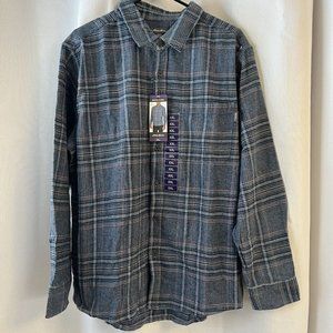 Eddie Bauer Men's Bristol Plaid Button Up Flannel Shirt Chambray Blue XXL