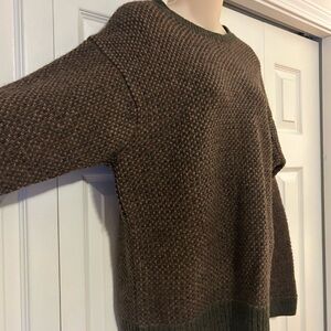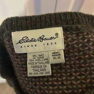 Cozy brown Eddie Bauer sweater with a classic crewneck. Ideal for layering. 100% wool. Very thick sweater.
