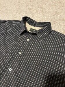 Eddie Bauer Mens Button Down Shirt Brownish Black Beige Stripes, Sz XL Tall