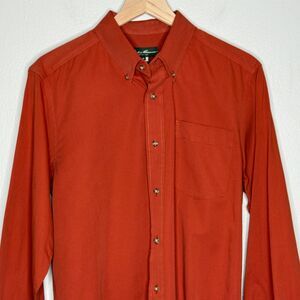 Eddie Bauer Mens Button Down Shirt Medium Orange Cotton Classic Outdoors