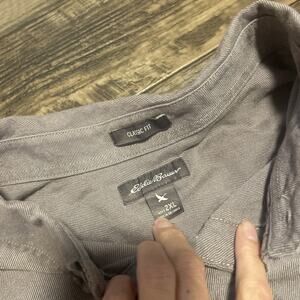 Eddie Bauer Men’s Button Down Shirt Solid Gray, 2XL Long Sleeve Up
