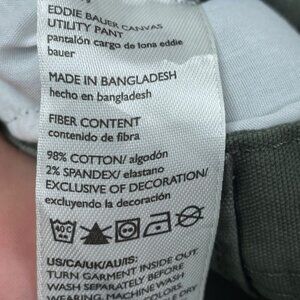 Rugged Eddie Bauer canvas utility pants, size 38x30, crafted from durable cotton-spandex blend. Features 5-pocket design, belt loops, and a classic straight-leg fit.