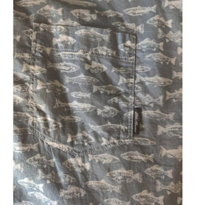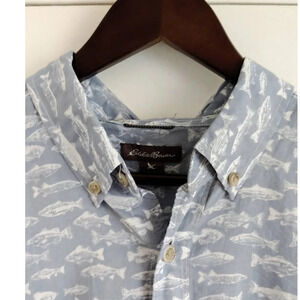 Eddie Bauer Men's Casual Button Down Shirt Short Sleeve Fish Print Blue Size L