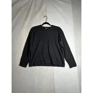Eddie Bauer Mens Charcoal Gray Merino Wool Cotton Blend Crewneck Sweater Large