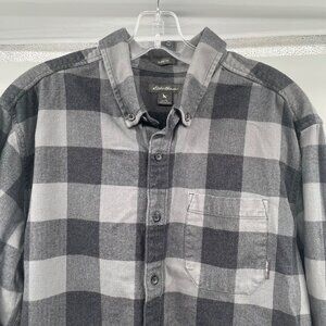 Eddie Bauer Men's Check Flannel Shirt Long Sleeve Classic Fit Gray Size TL