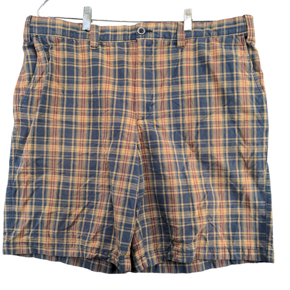 Eddie Bauer Men's Chino Shorts Multicolor Plaid Size 38 100% Cotton Slash Pocket