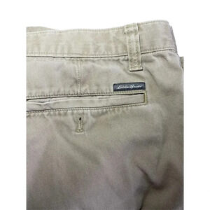 Keywords: Eddie Bauer, chino pants, men's fashion, casual wear, beige chinos, cotton pants, machine washable, pre-owned, classic style, comfortable fit, versatile clothing, solid pattern, belt loops, back pockets, men's chinos.