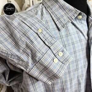 Eddie Bauer Men's Classic Fit Blue & Gray Plaid Long Sleeve Shirt Size XXL