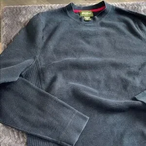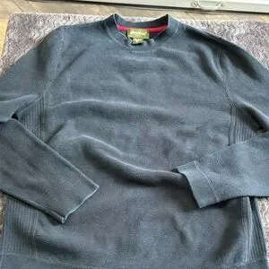 Green tag size large tall was black is an older piece super comfortable Soft knit crewneck sweater from Eddie Bauer. Navy body with subtle red trim at the collar. Ribbed cuffs and hem for a clean finish. . top to bottom measurements are. 29 1/2 inches pit to pit. 23 inches make sure to bundle to save on shipping.