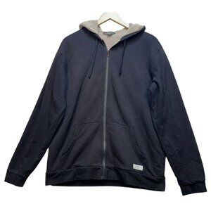 Eddie Bauer Mens Everyday Fleece Full-Zip Faux Shearling Lined Hoodie Sz TL Navy