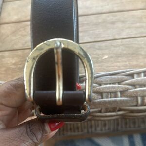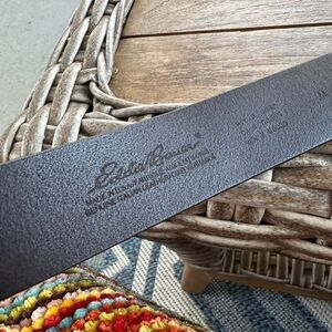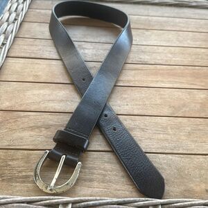 Hand-stitched detailing accents this casual, 1.5"-wide leather belt. Metal buckle with antiqued finish.