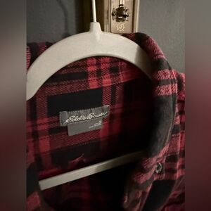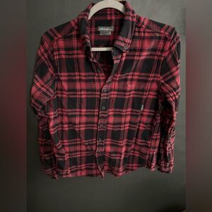 Eddie Bauer Men's Black/ Red Flannel Button Down Shirt Men's Size Small