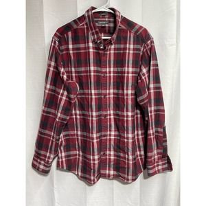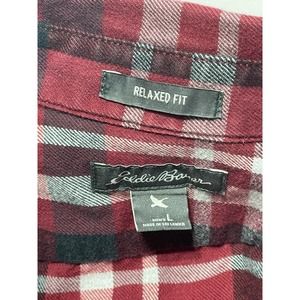 Eddie Bauer Men’s Flannel Button Dow n Red Black Size Large