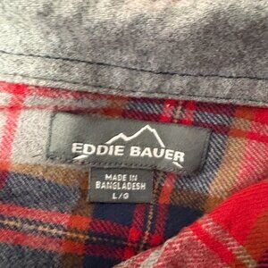 Eddie Bauer Mens Flannel Shirt Size Large Red Gray Blue Plaid Long Sleeve