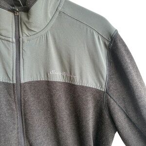 Eddie Bauer Mens Full Zip Fleece Jacket Sweater Black/Gray Hike Size Large