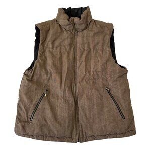 Eddie Bauer Mens Goose Down Reversible Puffer Vest Size XXL Black Brown Plaid