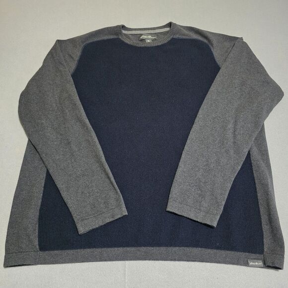 Eddie Bauer Men's Gray Blue Knit Pullover Sweater Crew Neck Size XXL