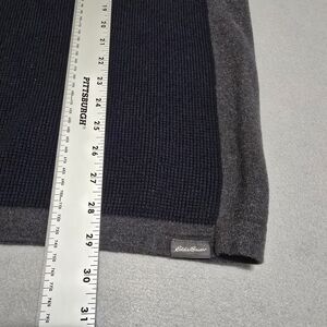 The Eddie Bauer Men's Gray Blue Knit Pullover Sweater in size XXL is a classic and preppy piece perfect for everyday wear. Made from a tight-knit blend of nylon, cotton, and wool, this sweater features a crew neck and long sleeves for added warmth and comfort. Ideal for travel, casual outings, or workwear, this sweater is machine washable and suitable for all seasons, making it a versatile addition to any man's wardrobe. Made in China, this sweater is designed for regular fit and style, with the Eddie Bauer logo accent adding a touch of sophistication.