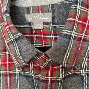 Eddie Bauer Men's Gray + Red Tartan Flannel Size XXL/2X