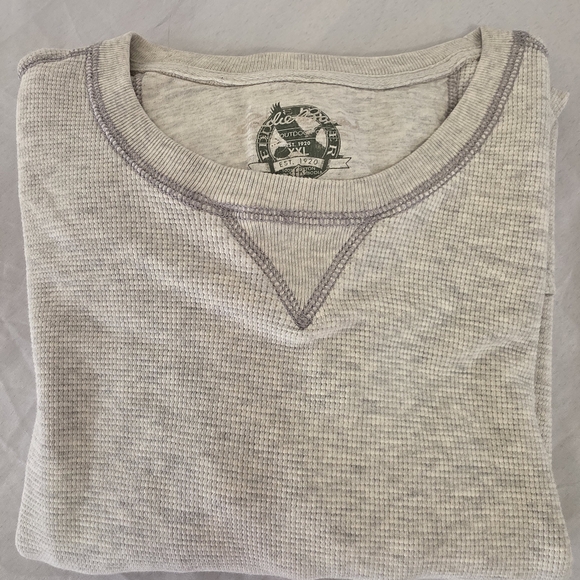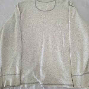 The Eddie Bauer Outdoor Outfitter Knit Collection sweater is a versatile and classic piece for men in size XXL. Made from a blend of polyester and acrylic, this tight-knit sweater features a solid beige color with a crew neck and long sleeves, making it suitable for travel, casual outings, and outdoor activities like walking, golf, and hiking.